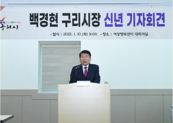 [한국뉴스타임=편집국] 백경현 구리시장은 10일 오전 11시 구리시 여성행복센터 대회의실에서 '2023년 신년 기자회견'을 열고, 2022년 주요사업 추진 성과와 2023년 시정 운영계획에 대해 밝혔다.