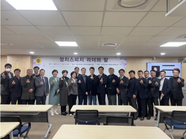 [한국뉴스타임=편집국] 경기도의회 교육행정위원회 이은주 의원(국민의힘, 구리2)이 회장을 맡고 있는 경기도의회 지방자치법연구회는 11일 경기도의회 중회의실에서 “정치스피치, 리더의 말”이라는 주제로 국회방송 앵커인 신동진 아나운서를 초청해 의원 맞춤형 교육을 실시했다.