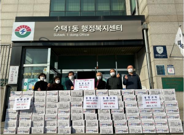 홍호섭 수택1동장은 “항상 지역의 어려운 이웃분들에게 관심을 가져 주시는 동명교회에 감사의 말씀을 전하며 앞으로도 소외 받는 주변에 이웃분들에게 지속적인 관심을 부탁드린다.”고 전했다.