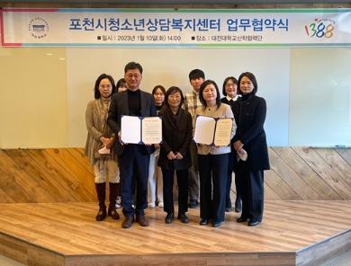 [한국뉴스타임=편집국] 포천시청소년상담복지센터는 지난 10일 대진대학교 산학협력단과 포천 관내 청소년 지원을 위한 업무협약을 체결했다.