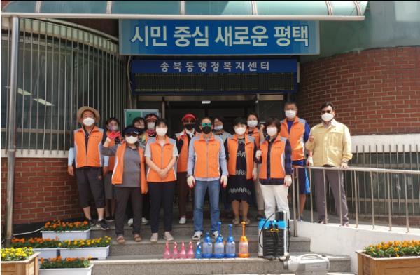 [KNT한국뉴스타임] 평택시 송복동은 10일 송복동 지역사회보장협의체(민간위원장 강길모)와 함께 주민들이 주로 이용하는 관내 공원 및 버스정류장을 방역소독 했으며, 지역의 안전을 도모하기 위해 저소득층 밀집거주지에 집중 방역을 실시했다.