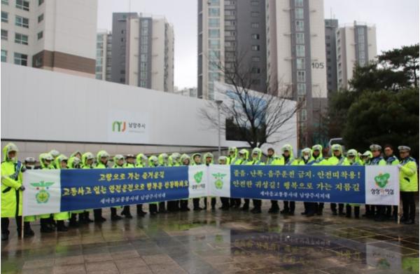 [한국뉴스타임=편집국] 새마을교통봉사대 남양주시지대는 15일 나용자 대장을 비롯한 각 지구대장 및 대원 50여 명이 참여한 가운데 구리 고속도로 입구 인근 도로변에서 설 맞이 교통사고 예방 캠페인을 실시했다.