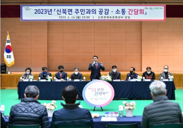 [한국뉴스타임=편집국] 백영현 포천시장은 지난 16일 신북면과 영중면 행정복지센터에서 ‘2023년 주민과의 공감?소통 간담회’를 개최했다.