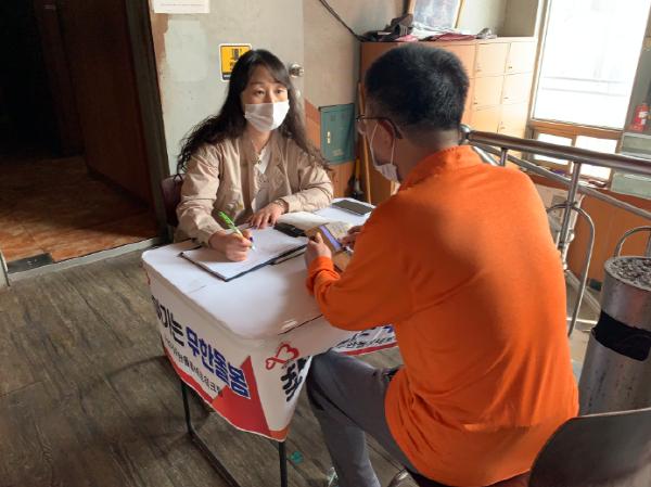 찾아가는 무한돌봄센터는 고시원 거주자들의 복지정보 접근성 향상, 고독사 예방, 은둔형 복지사각지대 및 위기가구 발굴을 목표로 위기가구에 대한 복지·건강·일자리 원스탑 상담을 지원하기 위해 사례관리사·일자리상담사·간호사 3인 1조로 구성하여 관내 고시원 56개소를 방문, 고시원 거주자 대상으로 72건의 상담과 36건의 공적 지원서비스를 연계하여 위기가구에 큰 힘이 됐다.