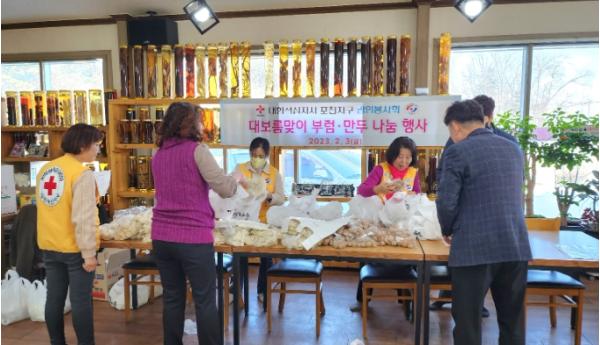 [한국뉴스타임=편집국] 대한적십자사 관인봉사회는 지난 3일 대보름을 맞이하여 어려운 이웃을 위해 부럼·만두를 전달하는 나눔 행사를 가졌다.