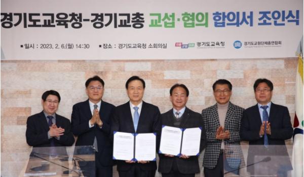 경기도교육청은 남부청사에서 경기도교원단체총연합회(회장 주훈지, 이하 경기교총)와 2022년 교섭협의 합의서 조인식을 열었다.
