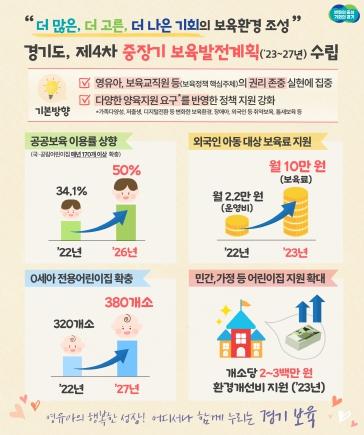 경기도는 이런 내용을 담은 ‘제4차 경기도 중장기 보육발전계획(2023~2027년)’을 수립해 올해부터 시행에 나선다고 7일 밝혔다.