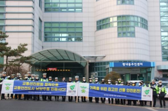 [한국뉴스타임=편집국] 새마을교통봉사대 남양주시지대는 7일 나용자 대장을 비롯한 각 지구대장 및 대원 40여 명이 참여한 가운데 평내동주민센터 일대에서 교통문화 개선 캠페인을 실시했다.