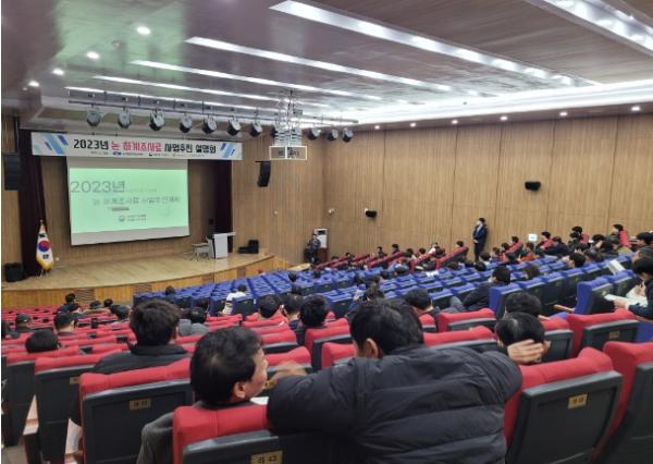 [한국뉴스타임=편집국] 농림축산식품부는 2월 7일 오후, 농식품공무원교육원(전남 나주 소재) 대강당에서 전남지역 농업인(벼재배농가, 축산농가), 지자체 및 지역 농?축협, 조사료 전문단지 및 유통 경영체 등을 대상으로 2023년도 '논 하계조사료 사업 추진 설명회'를 개최했다.
