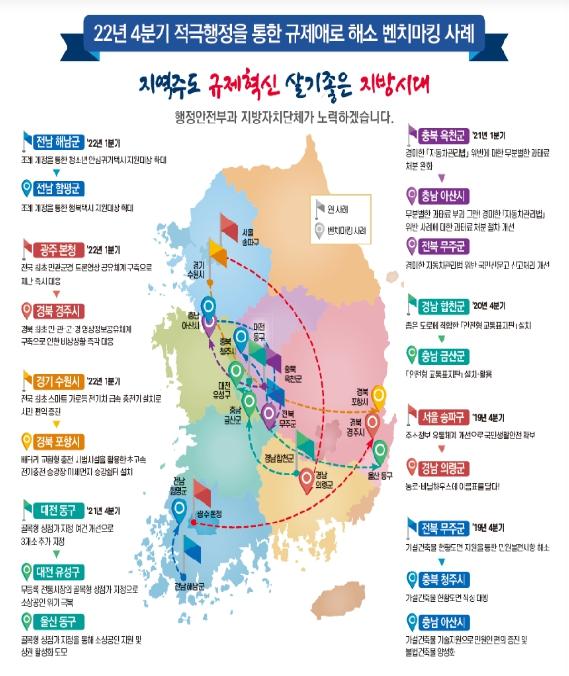 2022년 4분기 지자체의 적극행정 규제혁신 제출사례는 총 454건으로, 내·외부 심사를 거쳐 우수사례를 선정했다.