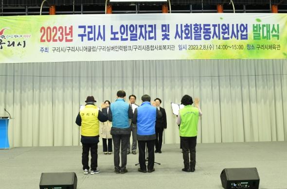 이날 발대식에는 여러 내빈과 일자리 수행기관 관련자, 노인일자리 참여자 2,000여 명이 참석한 가운데, ▲구리시립합창단의 위문공연 ▲내빈 축사 ▲2023년 노인일자리 사업 및 수행기관 소개 ▲선언문 낭독 순으로 진행됐다.