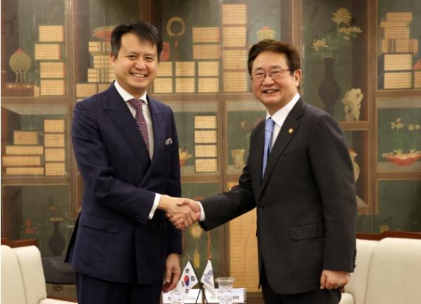 [한국뉴스타임=편집국] 문화체육관광부 박보균 장관은 2월 9일, 국립중앙박물관에서 세계지식재산기구(WIPO) 다렌 탕(Daren Tang) 사무총장을 만나 창의적 아이디어가 세계적 콘텐츠 지식재산(IP)으로 성장할 수 있도록 협력을 계속 확대하기로 했다.