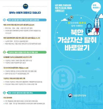 둘째, 우리 정부는 사이버 공간을 악용한 북한의 불법 외화벌이 실태와 이에 대한 우리 정부의 대응 현황을 설명하는 국ㆍ영문 홍보 소책자를 발간했다.