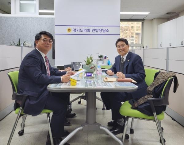 [한국뉴스타임=편집국] 경기도의회 김재훈의원(국민의힘, 안양4)은 10일 경기도의회 안양상담소에서 월남전참전자회 경기도지부 권건좌지부장과 함께 월남전참전자회 경기도지부의 애로사항을 청취하는 자리를 가졌다.