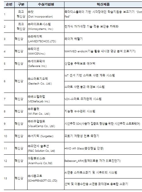 혁신상을 수상한 주요 제품들을 살펴보면 아래와 같다.