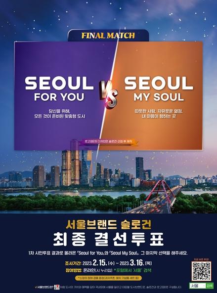 지난 조사 결과 전체 1위는 Seoul, my soul(37.3%), 2위는 Seoul for you(34.9%)로, 최종 9,641표 차이(총 투표 수의 2.4%)였으며, 내국인은 Seoul for you, 외국인은 Seoul, my soul을 각각 1위로 선택하여 최종 결선 투표를 실시하기로 했다.