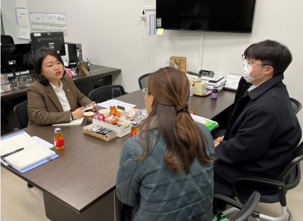 이자형 의원은 이날 도의회 의원실에서 초록우산어린이재단 경기지역본부 정희영 팀장 및 구준선 대리와 만나 가족돌봄청년들의 현 실태를 듣고, 실효성 있는 지원내용을 함께 고민하기 위한 자리를 가졌다.