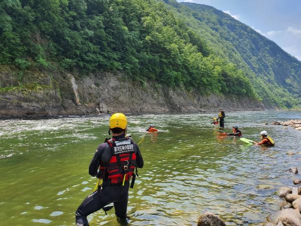 훈련은 길이 300m, 강폭 50m의 남한강에 실제로 사람이 물에 빠져 휩쓸려 떠내려가는 상황을 가정해 급류 수영과 로프 및 급류 보트 활용기술, 항공기 인명구조 훈련 등의 순으로 진행됐다.
