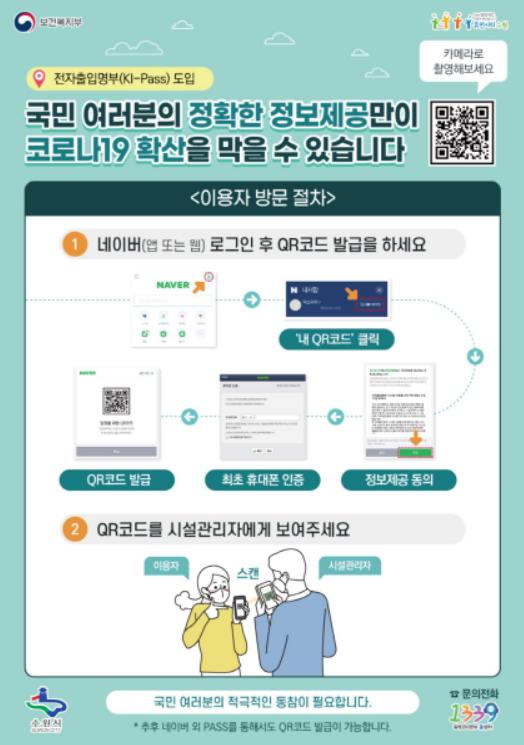 한편 6월 10일부터 전국 고위험시설(의무 대상)에서 전자출입명부가 시행되면서 수원시 관내 고위험시설도 반드시 개인 QR코드를 스캔하고 출입해야 한다.