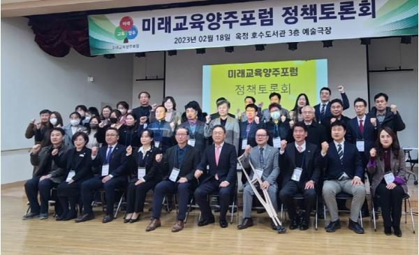 [한국뉴스타임=편집국] 경기도의회 김민호 의원(국민의힘, 양주2)은 18일, 양주시 옥정호수도서관에서 ‘미래형 양주교육청 신설과 역할’에 대해 발표하고, 양주시의회 강혜숙의원(국민의힘, 비례), 주민 등과 함께 토론하는 시간을 가졌다.