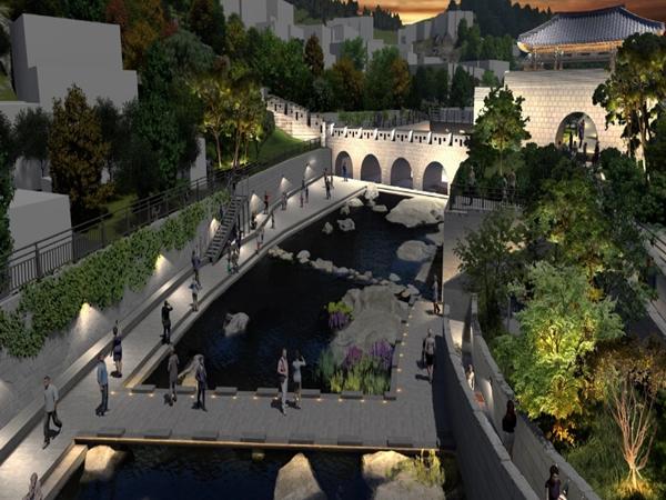 종로구 홍제천 상류 : 역사와 자연, 감성적인 야경이 공존하는 ‘일상 속 역사문화공간’으로 재탄생한다. 북한산 자락을 따라 흐르는 물길과 지역의 대표적인 역사자원인 홍지문·탕춘대성을 조망할 수 있는 수변테라스, 문화재를 탐방할 수 있는 보행로, 은은한 빛으로 아름다운 야경을 선사하는 조명 등을 설치할 계획이다.
