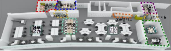 둘째, 수평적 자리배치를 통해 사무실을 개방과 공유의 공간으로 재설계하고, 여유 공간을 다목적실 및 개방형 회의 공간으로 조성했다.