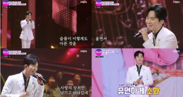 공훈과 함께 ‘추억으로 가는 당신’을 열창했던 1라운드 듀엣전에 이어 2라운드 개인전 무대에 오른 남승민은 특별 심사위원인 주현미 원곡의 ‘울면서 후회하네’를 선곡하며 무대에 올랐다.