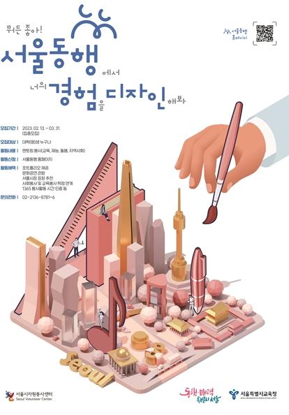 2023년도 서울동행은 ‘너의 경험을 디자인 해봐’라는 핵심 메시지로 체계적인 시스템과 운영 관리를 통해 대학(원)생의 경험을 구체화하여 진로에 연계하고 자기주도적 경험을 쌓을 수 있는 환경을 제공한다.