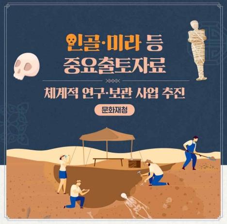 개정된 법률에 따라 올해부터 매장문화재 조사기관은 발굴조사 과정에서 미라·인골 등이 출토되면 지체 없이 문화재청의 위탁기관인 (사)한국문화유산협회에 신고하여야 하며, 문화재청 국립문화재연구원은 해당 출토자료에 대해 2명 이상의 관련전문가 자문 등을 고려하여 중요출토자료 여부 및 연구·보관에 관한 사항을 결정하는데, 검토 결과 중요출토자료로 선정되면 (사)한국문화유산협회는 유형별 중요출토자료 전문기관과의 개별계약을 통해 연구·보관 등에 따른 제반비용을 지원하게 된다.
