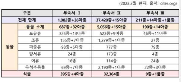 아울러 “이번 목록에 포함된 파충류, 상어류, 목재류 등의 생물종 및 가공품을 보유하고 있던 국민들은 취득증명서를 빠른 시일 내 발급받아 불법 보유 및 거래 등으로 법령*을 위반하지 않도록 주의해 줄 것”을 덧붙였다.
