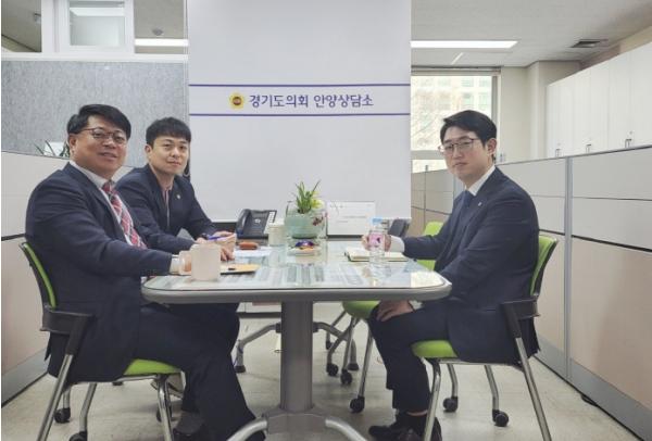 [한국뉴스타임=편집국] 경기도의회 김재훈(국민의힘, 안양4), 유영일(국민의힘, 안양5)의원은 22일 도의회 안양상담소에서 안양시청 예산법무과 문수훈 대외협력관과 지역현안과 지역발전에 대한 정책협의를 가졌다.