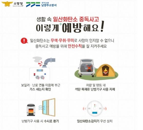 숙박시설 안전 수칙으로는 ▲보일러·가스 연통 이음매 부근 가스 새는지 확인 ▲차량 및 텐트 내 석탄·목재류 난방기구 사용 자제 ▲난방기구 사용 시 수시로 환기 ▲일산화탄소감지기 우선 설치 등이 있다.