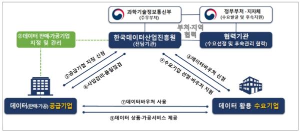 2019년부터 추진해 온 데이터이용권(바우처) 지원사업은 중소기업, 소상공인, 예비창업자 등을 대상으로 비즈니스 혁신 및 신제품?서비스 개발 시 필요한 데이터 상품 또는 가공서비스 비용을 이용권(바우처)으로 지원하는 사업이다.