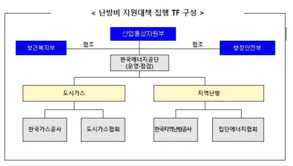 '난방비 지원대책 집행 TF'는 난방 공급자에 따라 지원방식, 지원시기 등이 차이가 있어 현장에서 야기될 수 있는 혼선을 방지하고, 관련 기관 간 협조체계 마련을 위해 구성됐다.