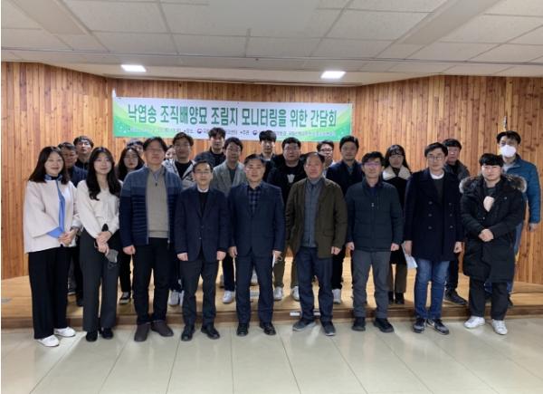 [한국뉴스타임=편집국] 산림청 국립산림과학원(원장 배재수)은 조직 배양묘 생산 사업의 일환으로 지난 2월 23일 국립산림품종관리센터에서 관계기관 담당자들이 모인 가운데‘낙엽송 조직배양묘 조림지 모니터링을 위한 간담회’를 개최했다고 밝혔다.