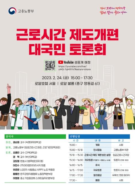 [한국뉴스타임=편집국] 고용노동부는 2월 24일 로얄호텔 서울(2층 로얄볼륨)에서 ?근로시간 제도 개편? 대국민 토론회를 개최하였다.