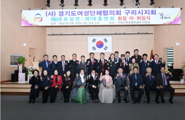 [한국뉴스타임=편집국] 구리시는 지난 23일 구리시여성행복센터 대강당에서 (사)경기도여성단체협의회 구리시지회 제6대 유성연 전임회장과 제7대 홍연희 회장의 이·취임식을 가졌다.