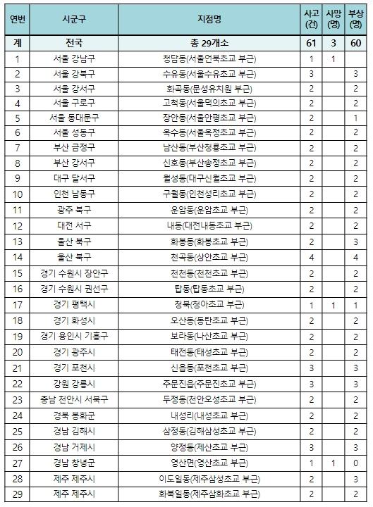 특히, 매년 8월에 실시했던 ‘어린이 보호구역 내 어린이 교통사고 다발 지역 점검’은 올해부터 이번 개학기 위해 요인 점검과 연계하여 추진될 예정으로, 2022년 어린이 교통사고 다발지역 29개소에 대해서도 점검한다.