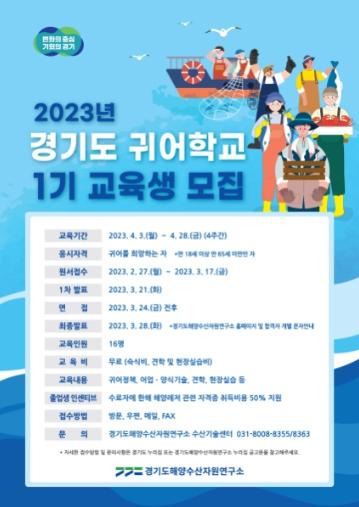 [한국뉴스타임=편집국] 경기도해양수산자원연구소는 어촌 정착을 희망하는 미래 어업인을 위한 2023년 경기도 귀어 학교 1기 교육생을 27일부터 다음 달 17일까지 모집한다.