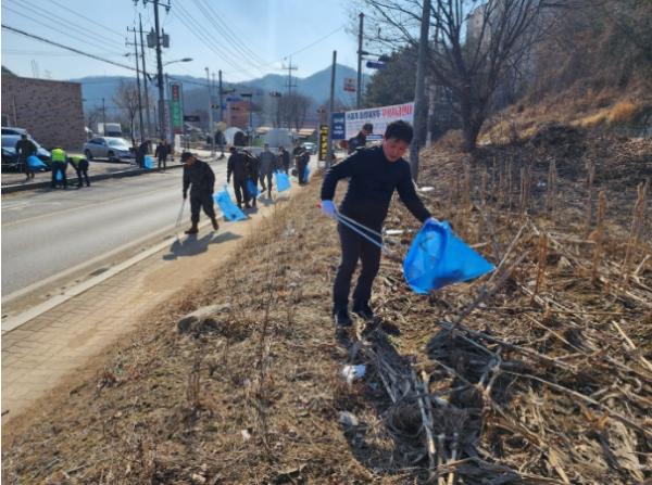 이번 활동은 육군 제5799부대의 요청에 따라 실시됐으며, 육군 제5799부대 장병들을 비롯해 별내면사무소 직원 등 40여 명이 참여해 청학리와 용암리 입구 도로변에 무단으로 투기 된 쓰레기와 낙엽 등 100리터 마대 120개 분량을 수거했다.