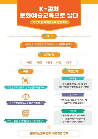 문체부는 현장 관계자와 전문가로 ‘제2차 문화예술교육 종합계획 수립 추진위원회’를 구성한 것을 시작으로, 대국민 설문조사·정책토론회 등을 통해 수혜자와 관계자의 다양한 요구를 수렴해 종합계획안을 도출했다.