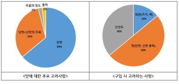 농촌진흥청은 소비자 집단 50명을 대상으로 딸기 구매 경향과 맛 선호도도 조사했다. 딸기를 구매할 때 고려하는 점으로 응답자의 50%가 맛(단맛, 신맛, 풍미)을, 36%는 신선도를 꼽았다. 단맛만을 선호한다는 답이 64%였고, 단맛과 신맛의 조화로움을 선호한다고 답은 32%로 나타났다.
