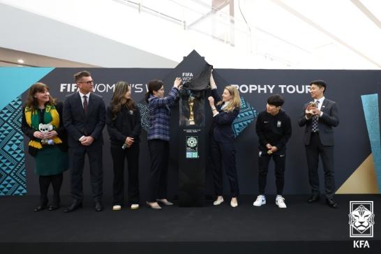 2023 FIFA 여자 월드컵 트로피 투어 한국 방문 행사가 27일 오후 서울 강남구 영동대로에 있는 스타필드 코엑스몰 라이브 플라자에서 진행됐다. 대한축구협회 홍은아 부회장과 이영표 부회장, 여자 축구대표팀의 콜린 벨 감독과 지소연, 최유리 선수가 자리했다. 사회는 대한축구협회 신아영 이사와 박문성 해설위원이 맡았다. 대한축구협회 공식 마케팅 플랫폼 PLAYKFA를 통해 선착순 신청한 120명의 축구 팬도 참석했다.