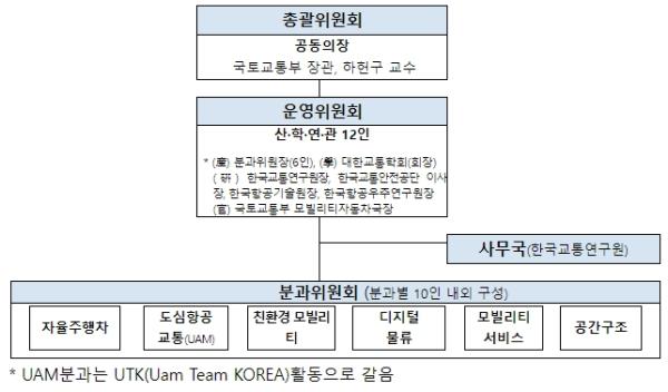 또한 원활한 포럼 운영을 위해 분과위원장과 대한교통학회장, 한국교통연구원장, 한국교통안전공단 이사장, 한국항공기술원장, 한국항공우주연구원장, 국토교통부 모빌리티자동차국장 등 산·학·연·관 12인으로 구성된 운영위원회를 두며, 한국교통연구원에서 사무국 역할을 수행할 계획이다.