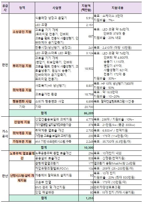 이를 위해 올해 에너지공급자 효율향상사업은 산업?건물?가정 등 에너지소비 전 부문에 대한 투자로 효율혁신 기반을 강화하는 한편, 소상공인, 뿌리기업, 취약계층 등에 대한 지원을 집중하여 에너지이용 부담으로부터 모든 국민을 두텁고 촘촘하게 보호하는데 중점을 두었다.