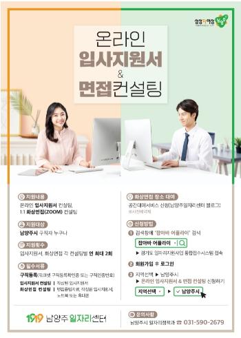[한국뉴스타임=편집국] 남양주시는 경기둔화로 인해 취업에 어려움을 겪고 있는 관내 구직자들을 대상으로 취업 성공을 위한 입사지원서 및 화상 면접 컨설팅을 오는 3월 2일부터 상시 운영한다.