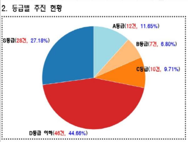 ‘시?군종합평가 상황판’ 서비스는 데이터 분석을 통해 부진 지표 개선 및 행정 전반에 선제적 대응 기반을 마련하고자 구축했으며, 시 전체 추진 실적 및 세부 지표에 대한 추진 현황 등을 한 눈에 확인 할 수 있다.