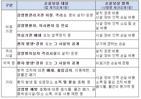 또한, 코로나19 대응 과정에서 정부나 지자체의 폐쇄·업무정지·소독 명령을 이행한 의료기관, 약국, 일반영업장 등에 대해서도 ’20년 8월부터 매월 손실보상금을 지급하고 있다.