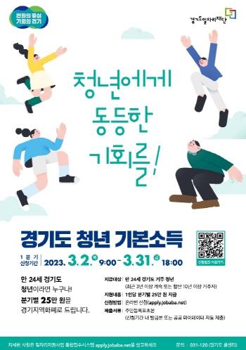 [한국뉴스타임=편집국] 경기도가 만 24세 청년에 분기별 25만 원을 지급하는 ‘청년기본소득’ 2023년 1분기 신청접수를 3월 2일 오전 9시부터 31일 오후 6시까지 진행한다.