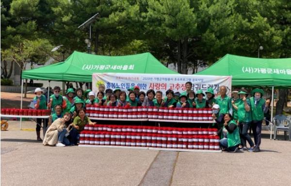 17일 군에 따르면 부녀회원 50여명은 가평종합운동장에서 코로나19 극복 홀몸노인을 위한 ‘사랑의 고추장 담가드리기’운동을 통해 이웃들에게 따뜻한 정을 전달했다고 밝혔다.